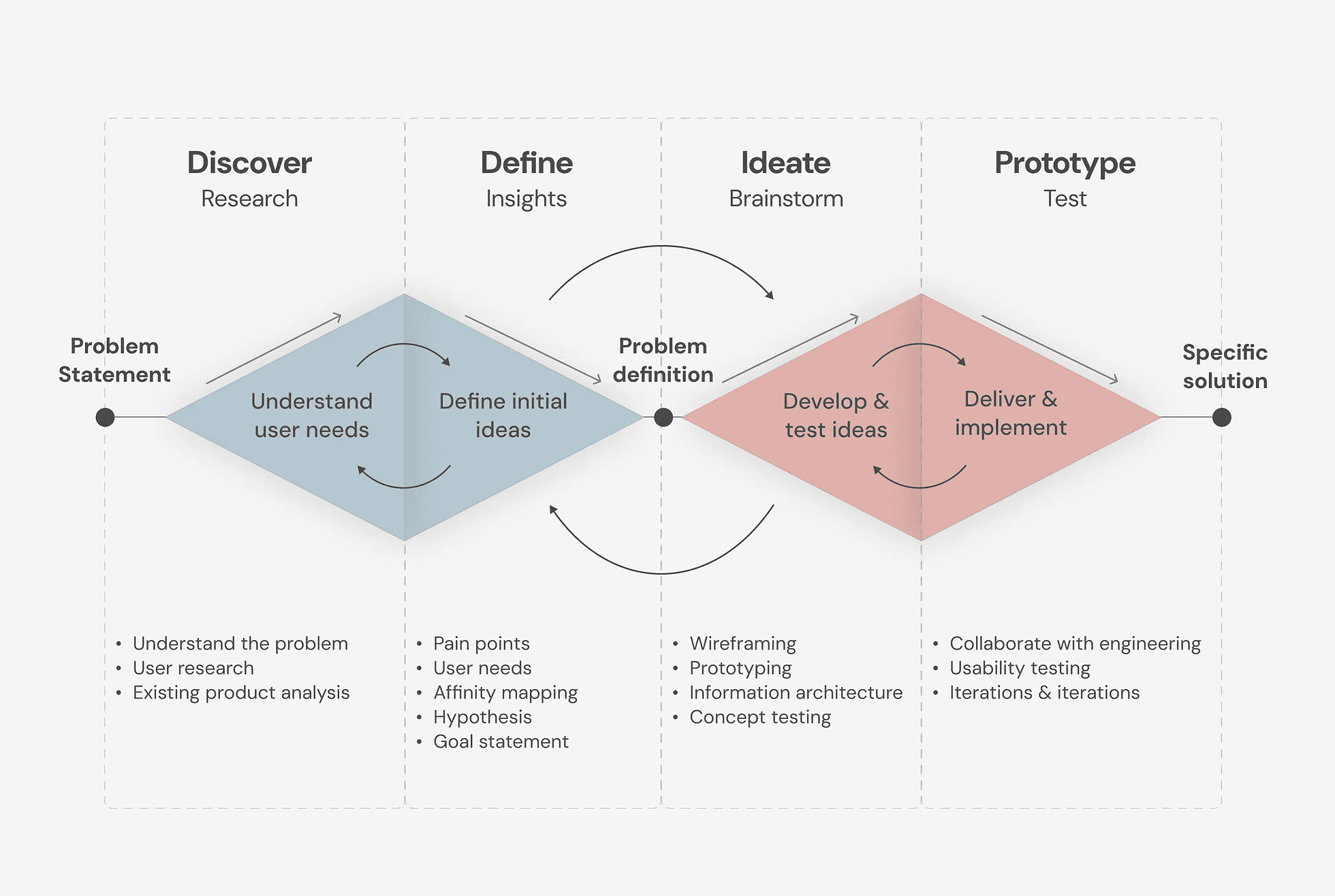 During my time at Google, I typically used the double diamond design process across my projects. My approach was firmly rooted in data-driven insights and a user-centric design thinking methodology, ensuring that every solution was tailored to meet the needs of the end user. I have worked closely with UX researchers, engineers, product managers, and fellow designers to align on the overall product vision. This teamwork has been crucial in successfully reaching our objectives.