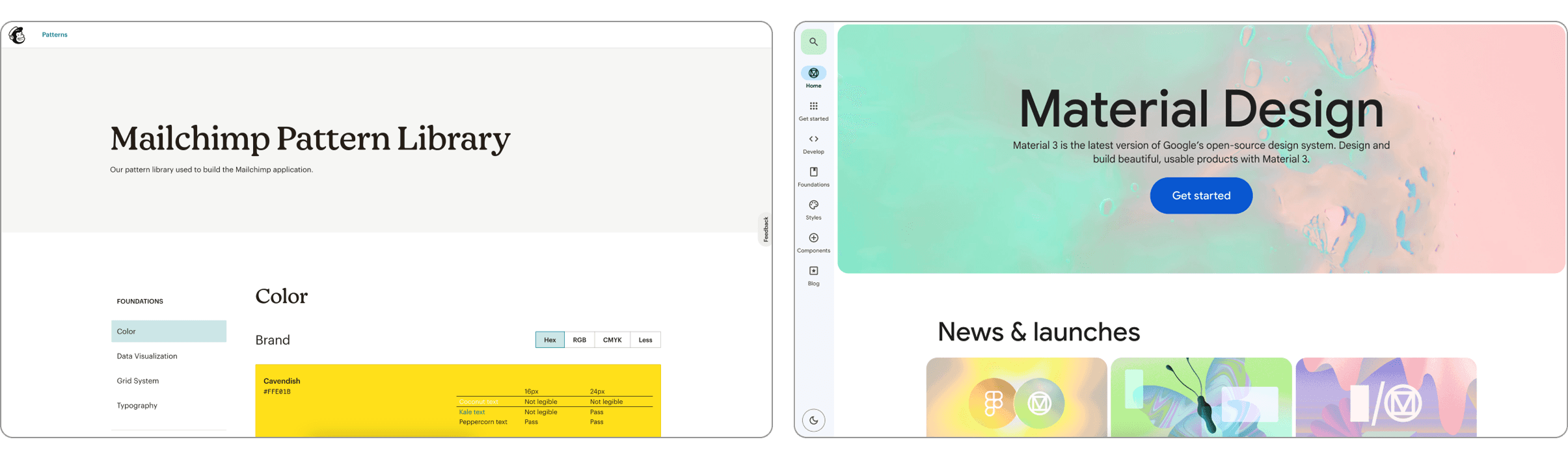 MailChimp's Pattern Library's simplicity in data visualization was a model for our chart analyses, and Google's Material Design had components that were universally familiar and intuitive. I wanted to implement the same concept into ours.