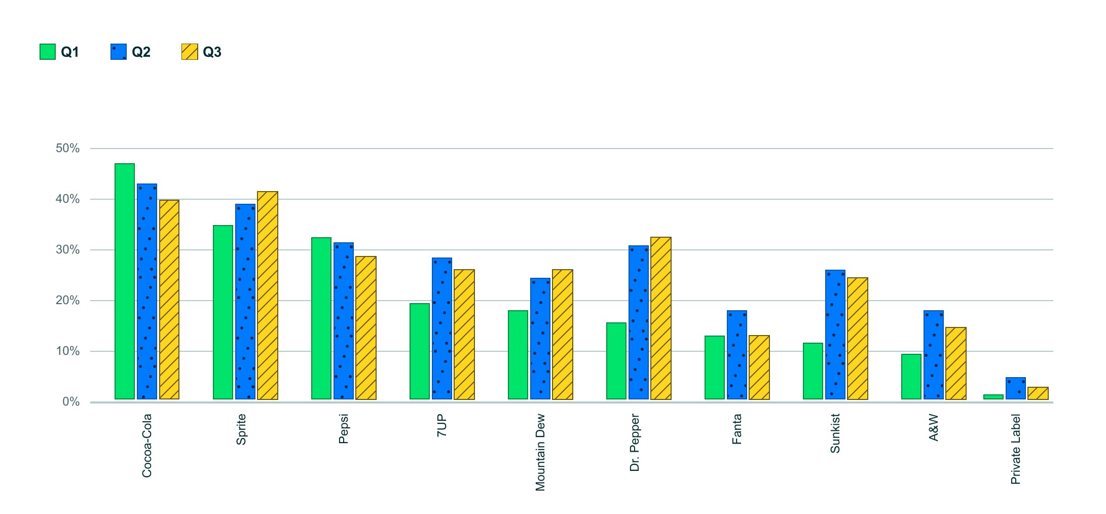 First iteration: Added patterns to each group and changed some colors