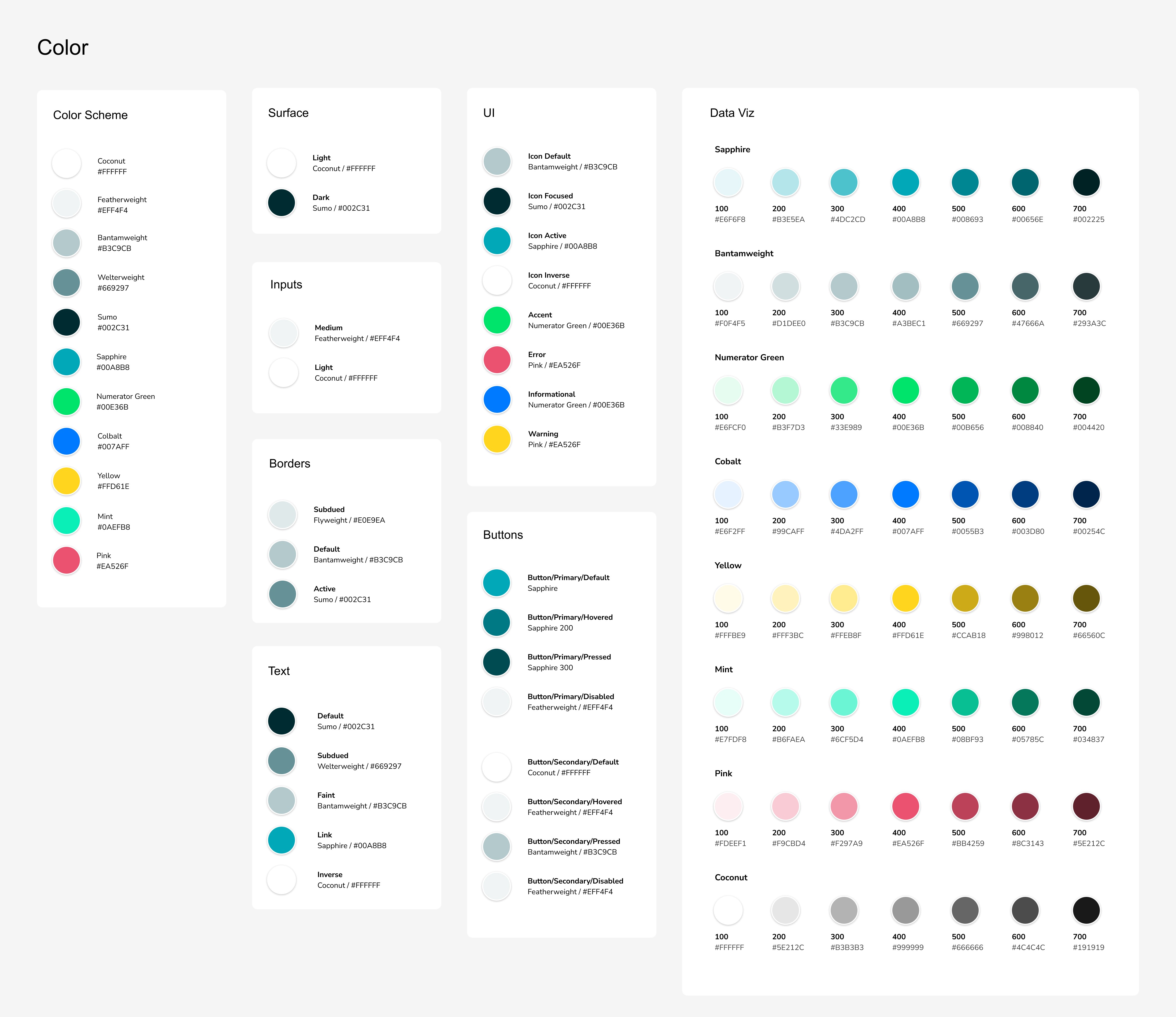 Based off the existing color palette from the company rebrand, we thoughtfully assigned each color a specific and functional purpose to guide its use throughout the user interface. We also expanded the color scheme into various hues, providing greater variety for effective data visualization. This approach not only enriched the user experience but also strengthened our brand recognition.