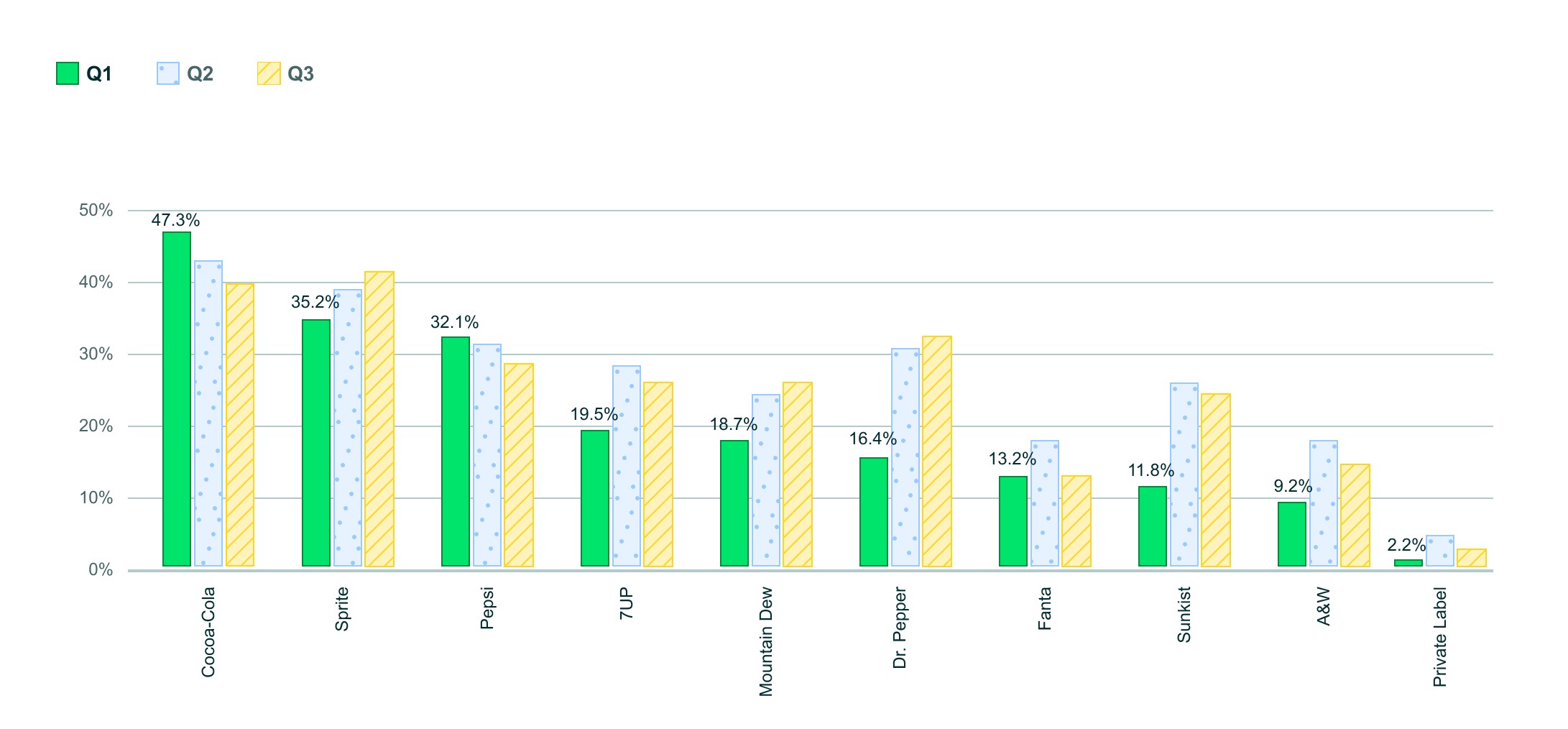 We introduced distinct patterns for each group and eliminated the pink color, as it may be perceived similarly to green by certain color-blind individuals. This adjustment aims to enhance clarity and accessibility for all users.